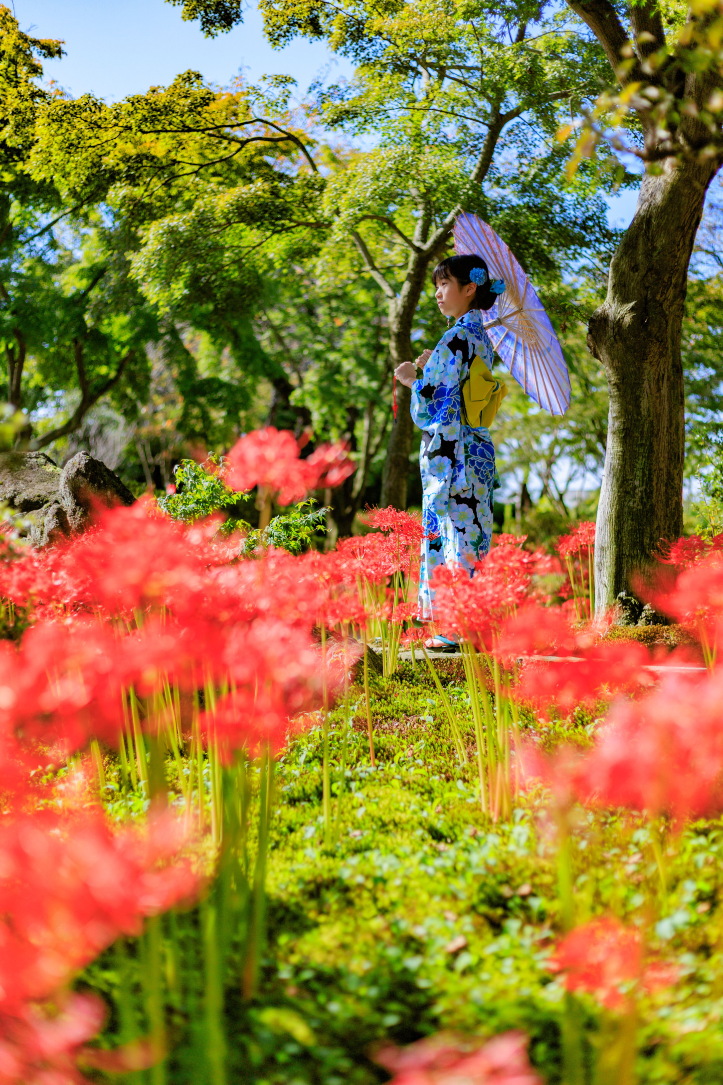 彼岸花と青モミジに包まれて